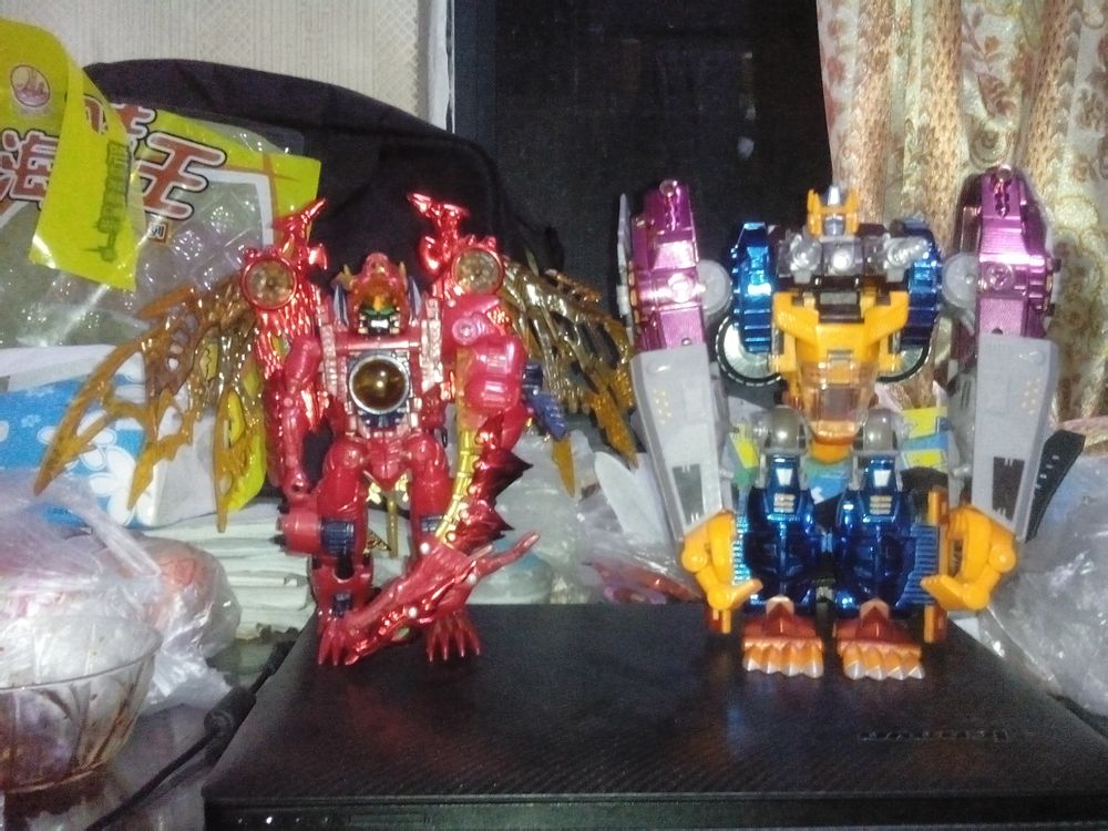 昨天刚到的一对tmsp 成色怒新 的确很帅。 盒子太烂没拍 兽形懒得变回去就不拍了 拍得不好 大家将就着看吧