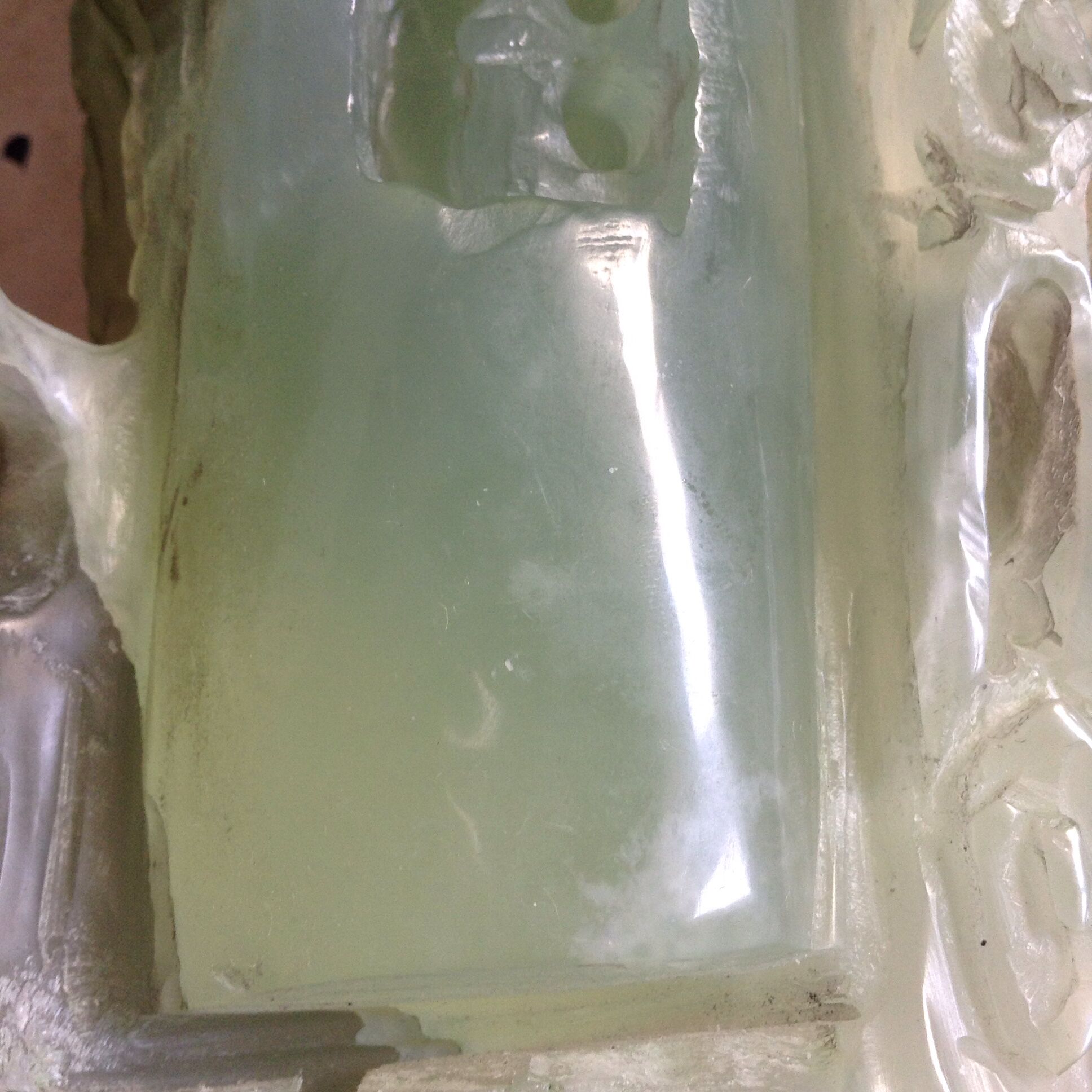 这个家里的,有好几年了吧,据说两张多毛爷爷买的,但我不知道是啥,其实我之前以为是塑料,不过摸起来是石头,果机拍的,实物颜色偏绿