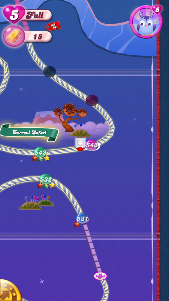 接下来就靠你自己了。3次满月,每次2步,14个糖果猫头鹰才掉落,这关难度应该不是太高