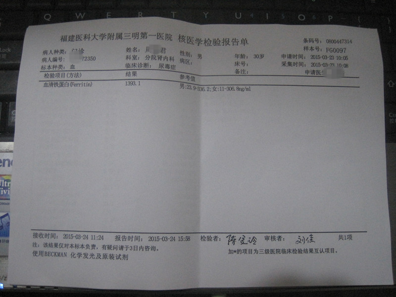 血铁清蛋白这次是第一次检测 1393.1 参考标准是男:23.9-336.2。医生说透析病人维持500以上就可以了?