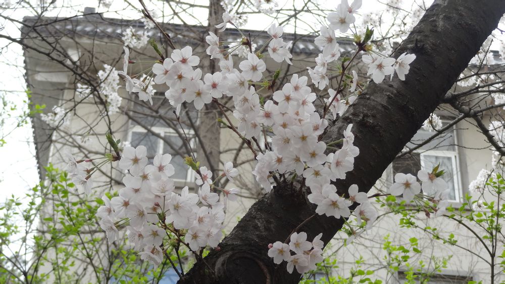 这两张的樱花算是早樱,树上零零散散的还开着几朵。