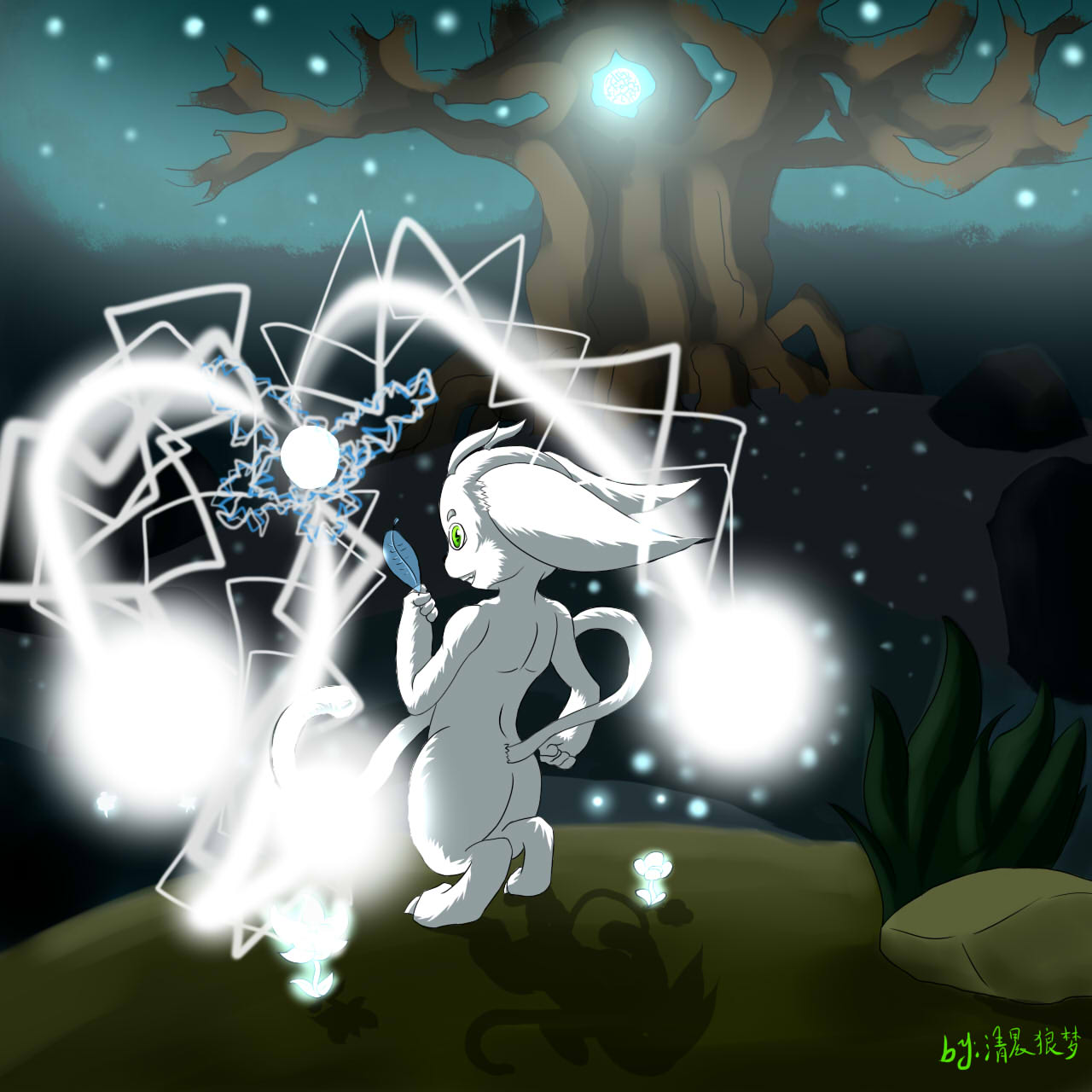 :还有就是必要的话阴影也是多余了。。。精灵自身发光是不可能有阴影的。。。