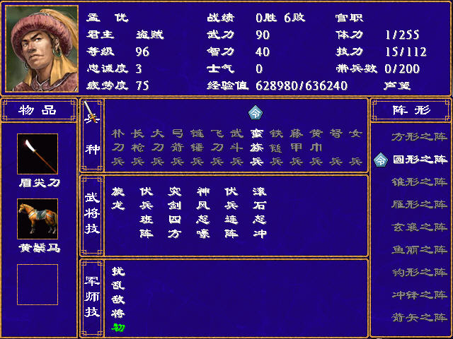 90武力的孟优,100疲劳后,武力降为60