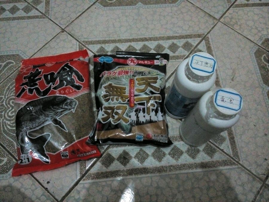 我看那两袋饵料好像真比国产的多呢?于是先拆了装瓶子里,明天去水库试试再说