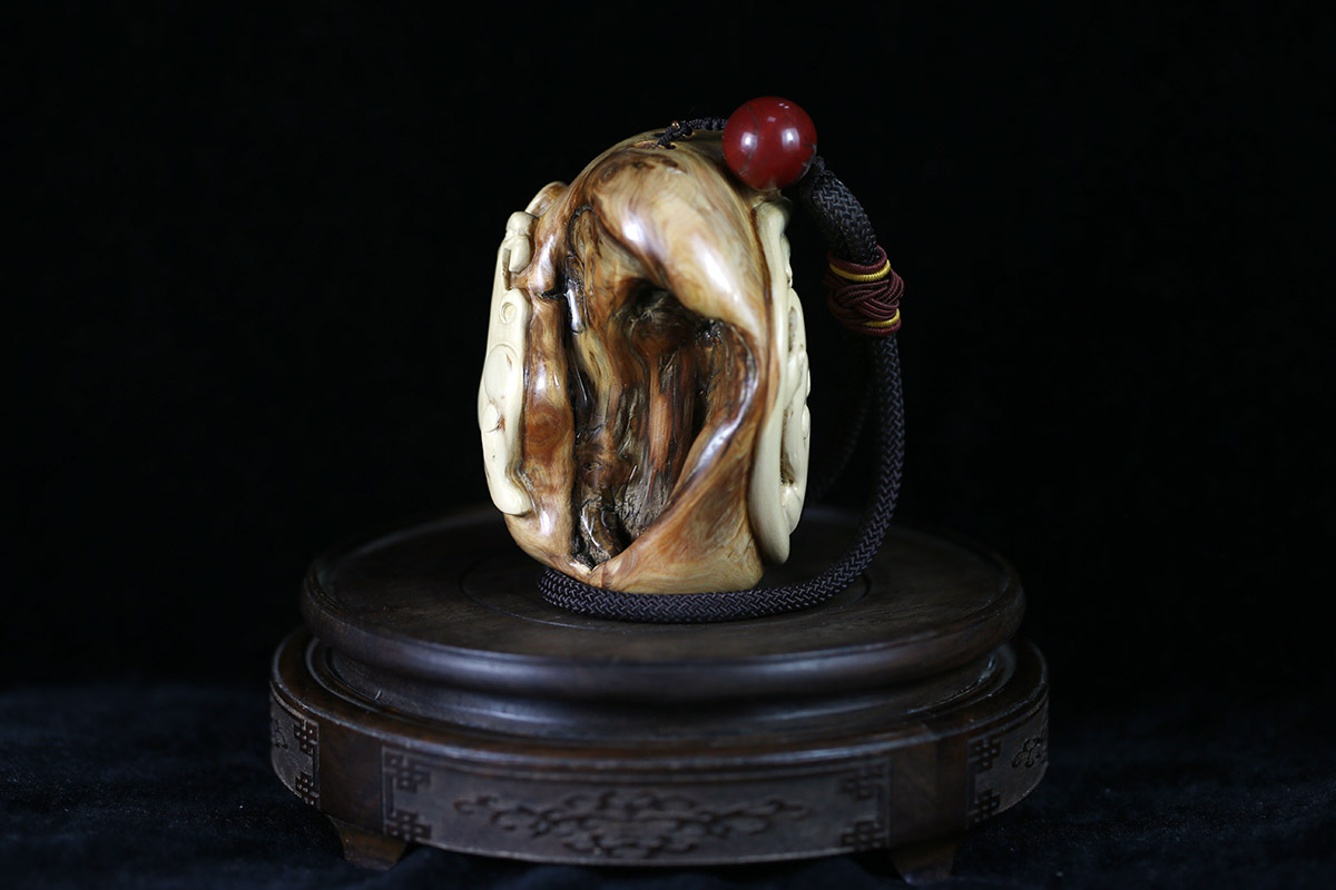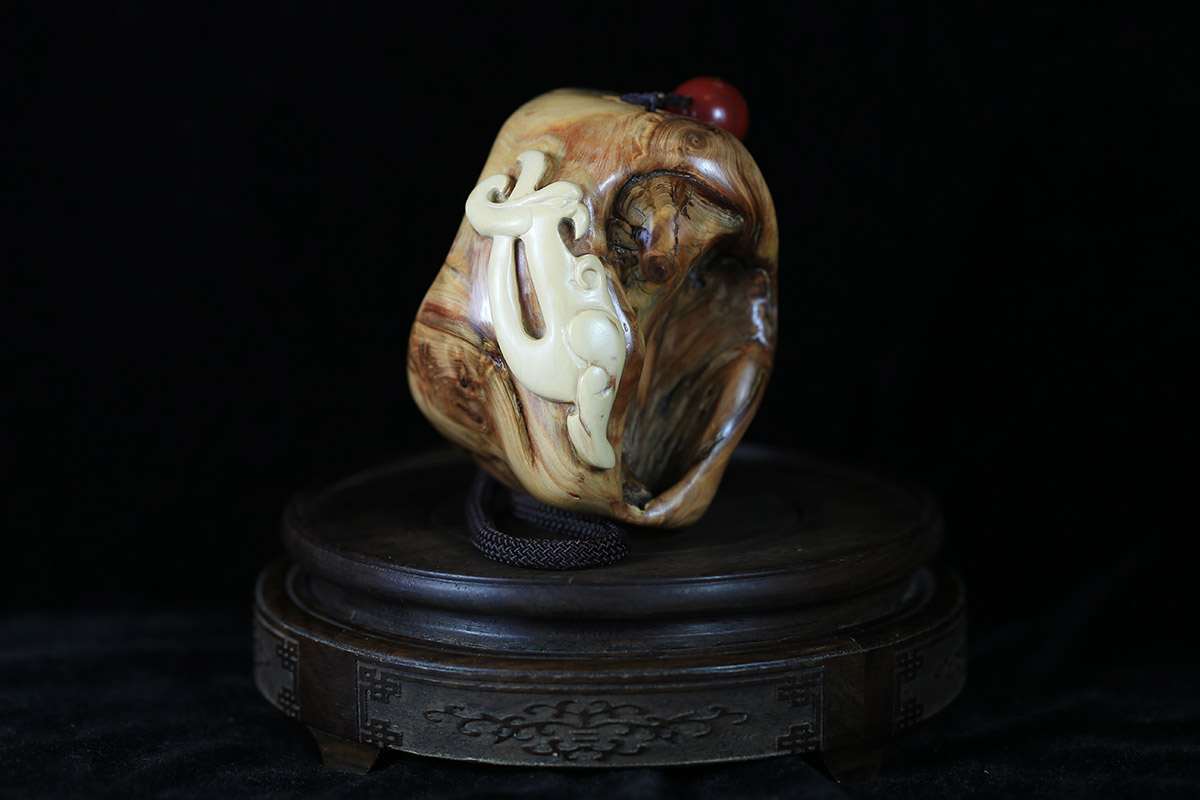 太行崖柏巧色雕《龙凤图》重211克共赏!