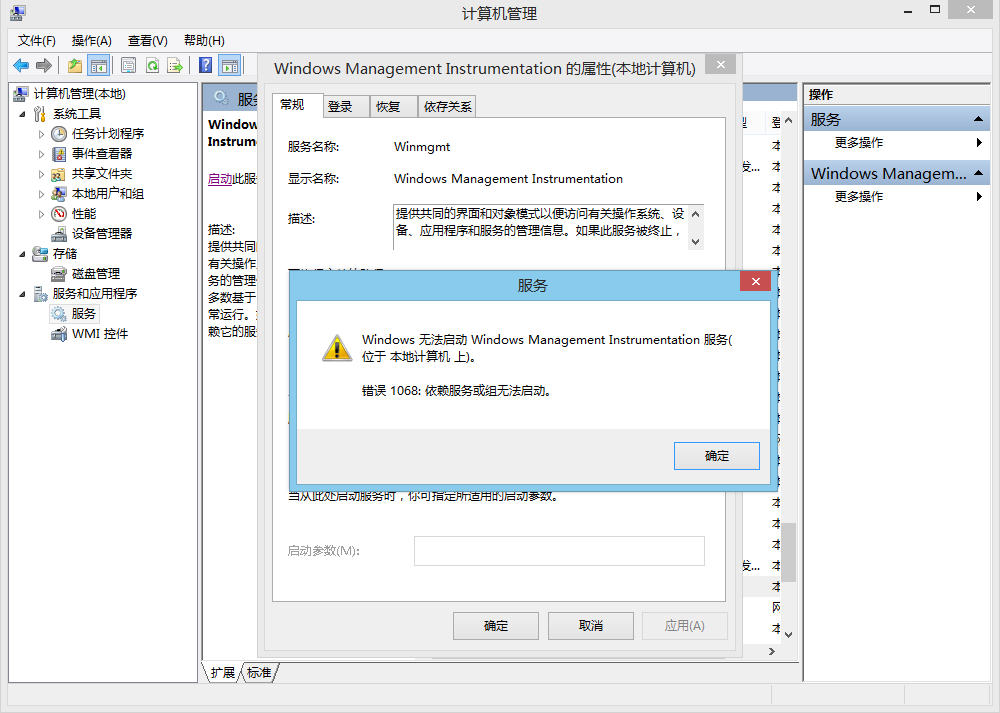 前几天你不知怎么的,安全中心打不开了,我到服务里尝试打开security center,结果打不开,显示1068错误,我就点开属性看依存关系,结果也打不开。我就去看WMI,也打不开,但是RPC是打开的,却不能修改状态。按照百度的方法,都试了,没用。并且发现凡是涉及到系统服务的都挂掉了,比如mysql会报错,hyper-v无法连接本地(里面的系统我要用的)。目前电脑像Word、QQ、PS这类常用软件还是能正常使用的。求各位大神指教下,能不能修复?不想重做系统,那样要重装的软件太多,怕麻烦。下面是一些截图。