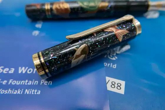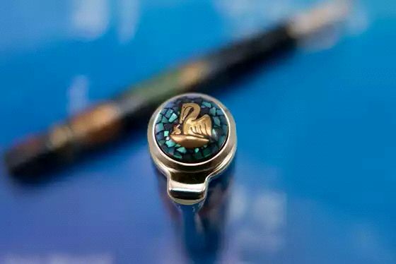 The motifs on the fountain pen symbolize this history: The turtle - the symbol for a long life - forms the centre-point, surrounded by numerous fish. It is produced using an elaborate mother-of-pearl inlay technique.