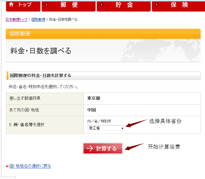 使用日本邮政网站查询运费
