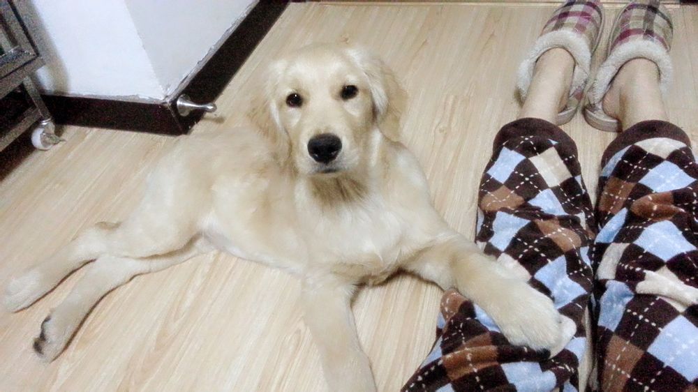 我家英镑,没有血统的金毛姑娘,生日是2014年11月9日。40天大的时候抱回来的。