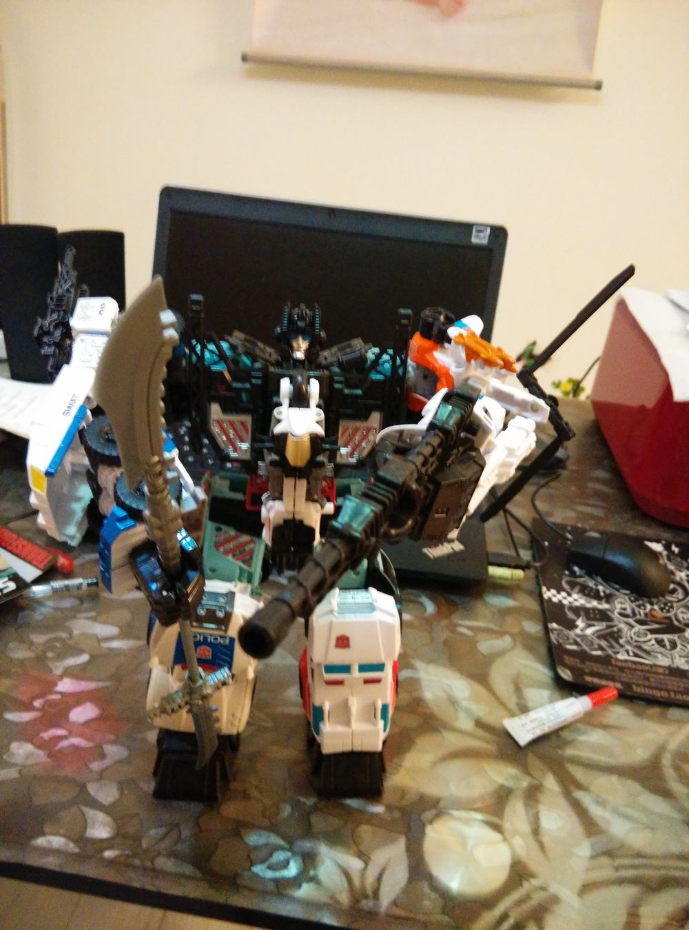 把热点的红色胸甲弄下来作为合体后的腰部,另外把国产星猫守护神的手脚板拿来替换通用手脚