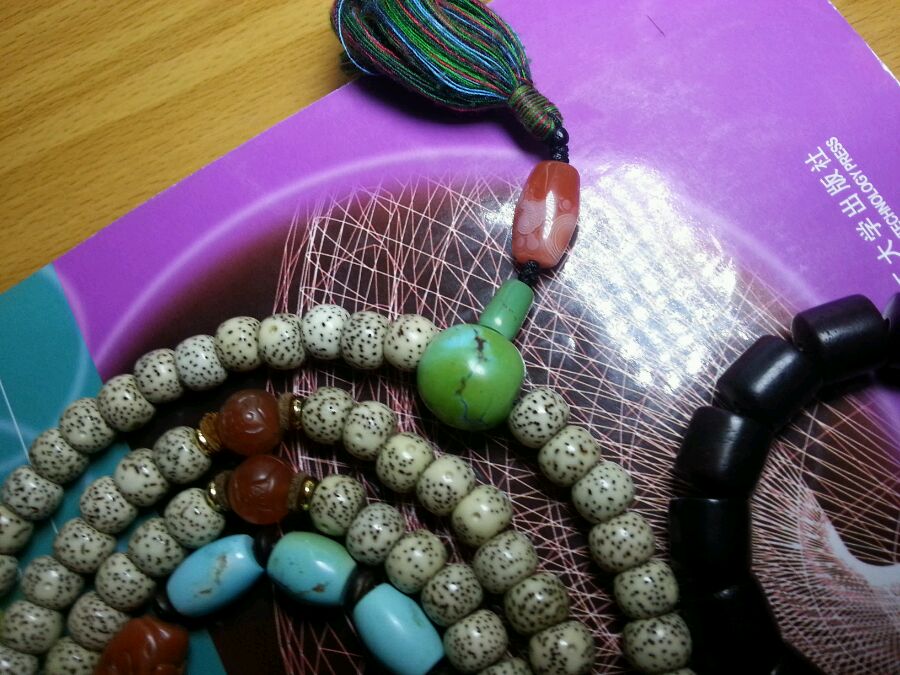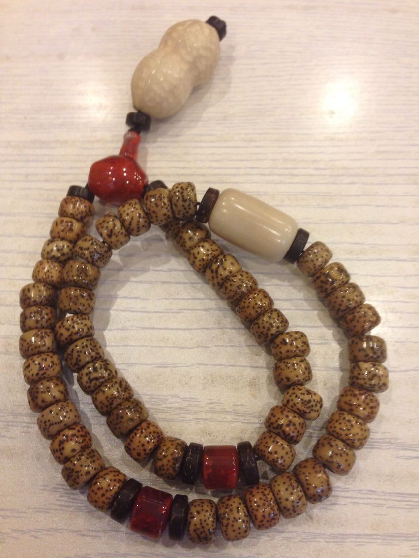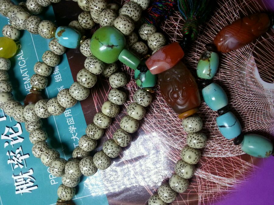 文玩党飘过。。星月南红蜜蜡绿松和象牙配是最好看的 这四种里选两到三种 别让颜色太杂 最好不要用青金紫龙晶和其他体透的晶宝 效果不是很好。。然后如果跟我一样不喜欢动物制品可以用象牙果代替象牙 还便宜很多 效果一样