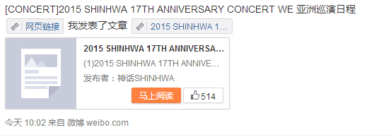 http://item.damai.cn/80636.html(2)2015 SHINHWA 17TH ANNIVERSARY CONCERT WE in TAIPEI