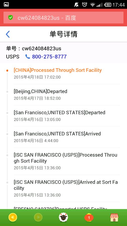 :估计还是跟邮寄分类有关,清明节后我收到了DHL过来的,但是USPS的还没音信。