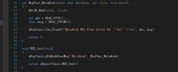 翻inc时看到EngFunc_RegUserMsg,于是想着是否能注册MetaHook消息,就测试了一下。