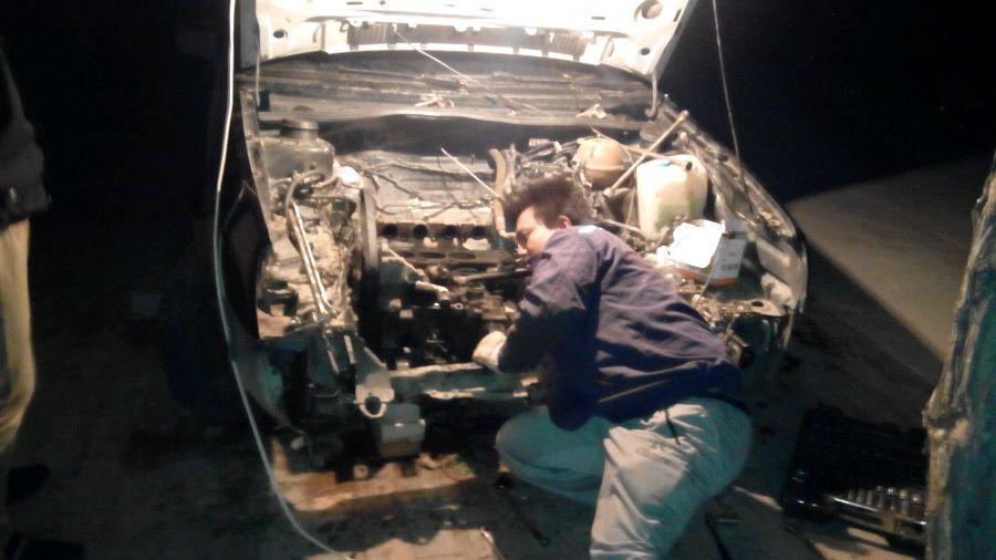 困得不行了,几个人,在工具不全的情况下就开始干。车不是好车,但是态度必须坚定