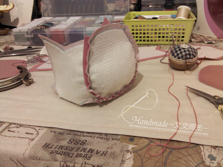 缝好一面的~缝制过程中如果发现点对不齐~布片大了或者小了,误差小的在几毫米之内的可以缩缝大点的布片,来找齐点。大太多的只能重新弄了~缩缝会有小褶皱,介意的也可以重新裁布片。