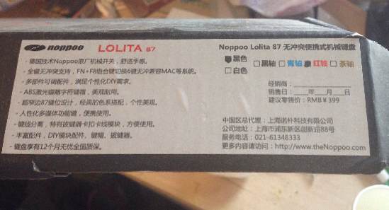 9成新noppoo lolita 87 红轴机械键盘甩卖了,本人用东西很珍惜,键盘从来没有沾水,也没有磕碰过,年底买的,用的不超过半年!主要是发现最近打字比较多,更想换个青轴用用,毕竟打字神器据说是!配件什么都在。价格可小刀,但是毕竟都是学生,也是穷了一逼,望各位仁兄手下留情
