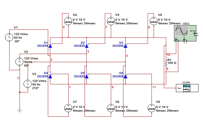 Multisim的三相桥式全控整流电路仿真