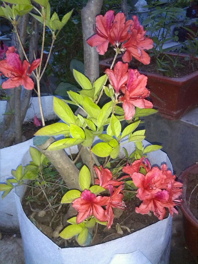 几盆映山红开花一个月左右了,现在到落花时节了。