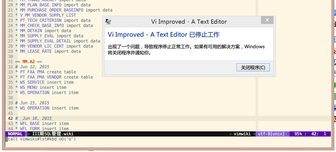 VIMWIKI打开如下样式的页面的时候,大部分操作甚至不操作都会导致VIM报错退出。