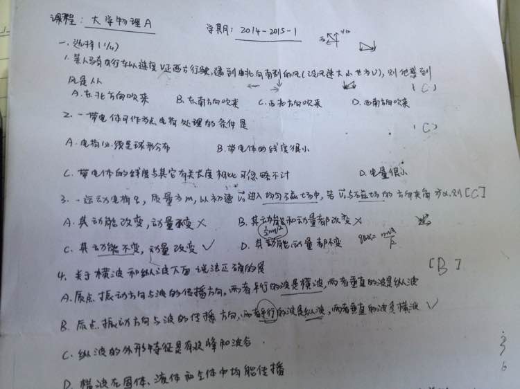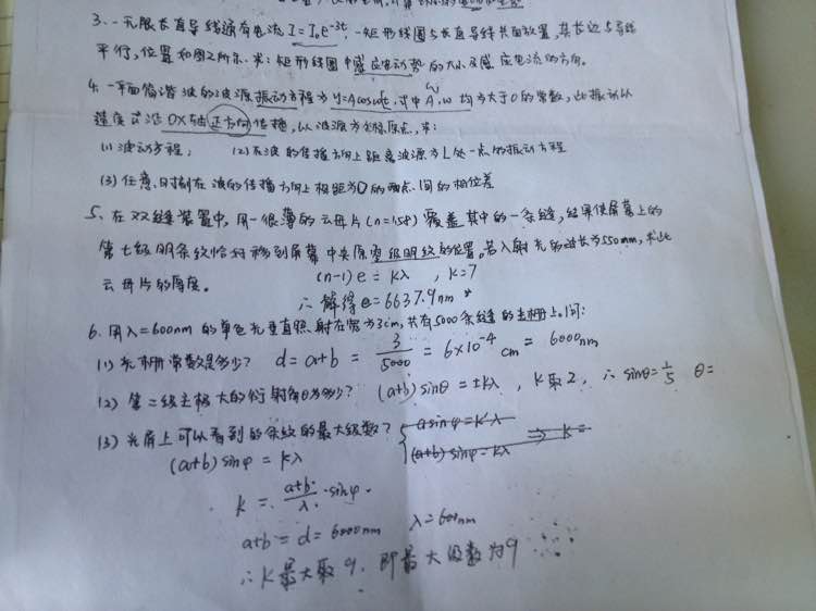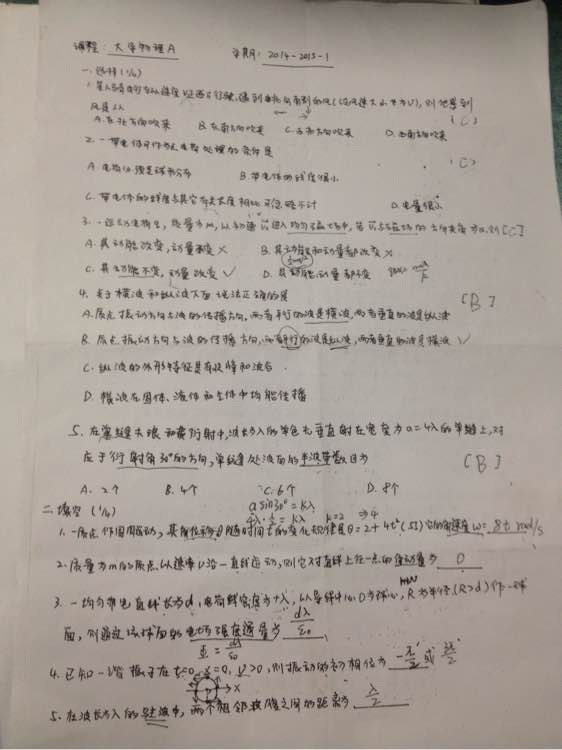 我手抄的上学期大物考试大题