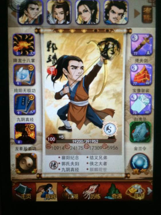 楼主这郭靖裸属性什么比例,几脉,七星和真气多少,我也还在用郭靖,准备深入后吃掉,想看看你怎么达到这属性哒