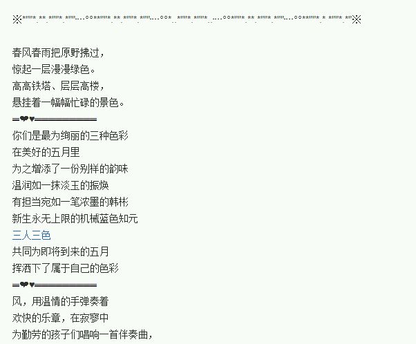 ☆…·…·…·百度iKON金三角吧全体送来劳动节祝福·……·…·☆