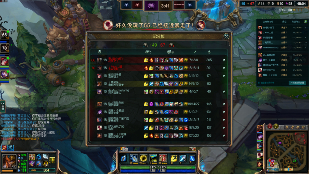 今天玩打野,皇子,虽然说不能抓爆三路把,但至少能带起来节奏,可惜碰到一个1V2就可以反杀一个的ADC,他认为1V2反杀是很厉害的事情,就从头到尾在那里喷,还说不行别 BB ,全场就下路最坑啊