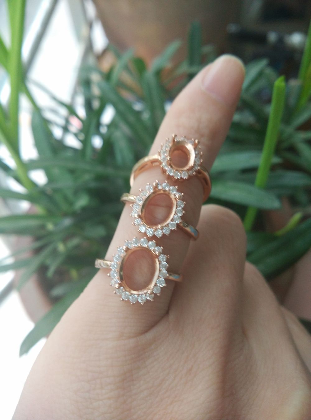 925银镀金镶嵌锆石戒指,200一个,自己去挑蛋面,楼主负责配托,喜欢的速度