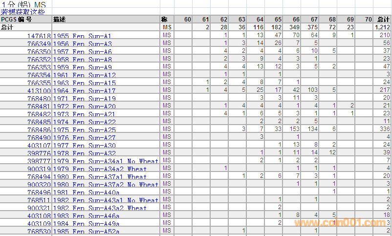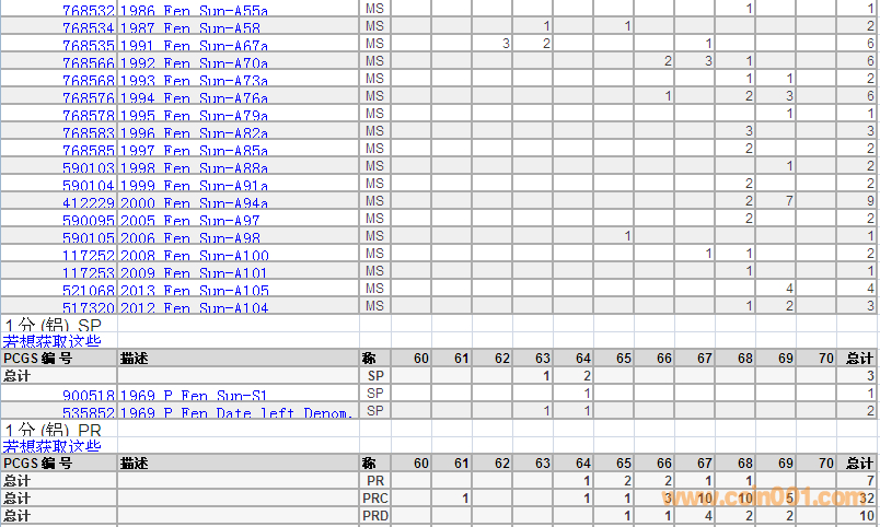 PCGS硬币评级分数分布表2015.4【转】