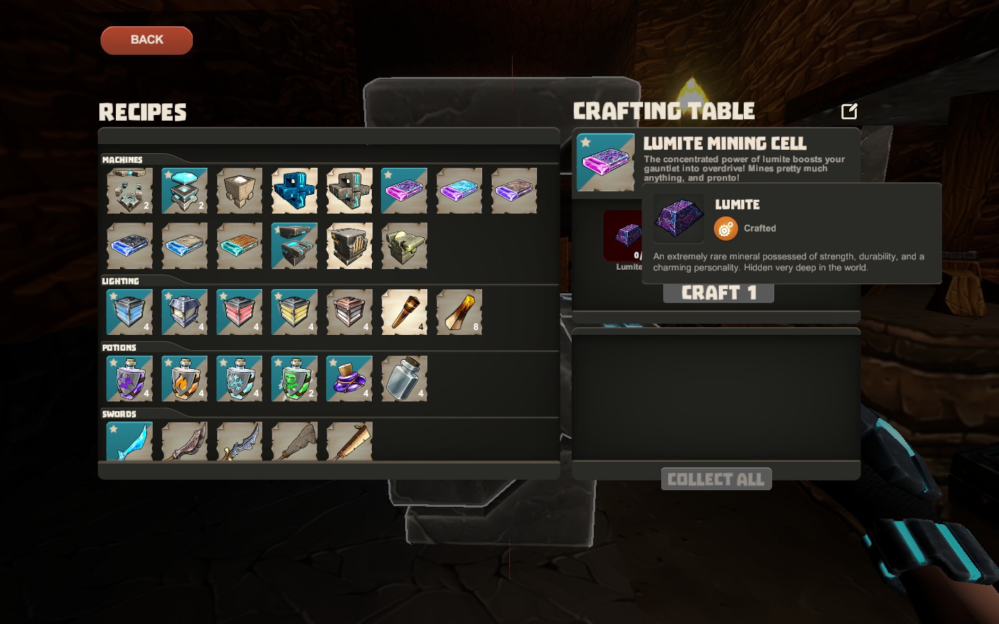 紫晶原矿是一种发出碎散紫光的黑石头,在辐射层黑暗的环境里非常容易发现