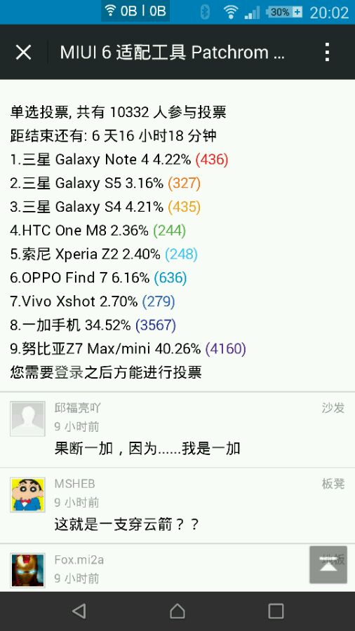 z2的miui 6适配官方投票,倒数第二。。。