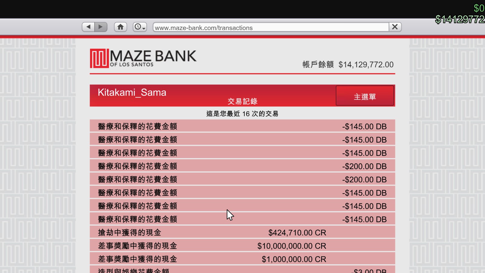 犯罪首脑一千万,忠贞不二一百万,依序进行一百万,全部是成就奖励,成就完成就有奖励