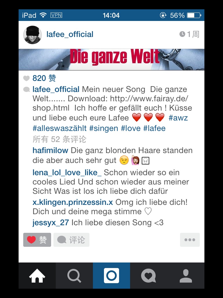 只看懂Lafee说这是我的新歌,有人回复喜欢里面的金发,还有人说爱Lafee