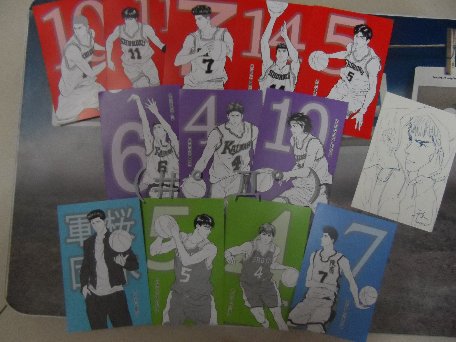 明信片分别为:湘北、陵南、海南、翔阳、山王、丰玉五支队伍,以及不良三井队伍、湘北替补和其他配角。