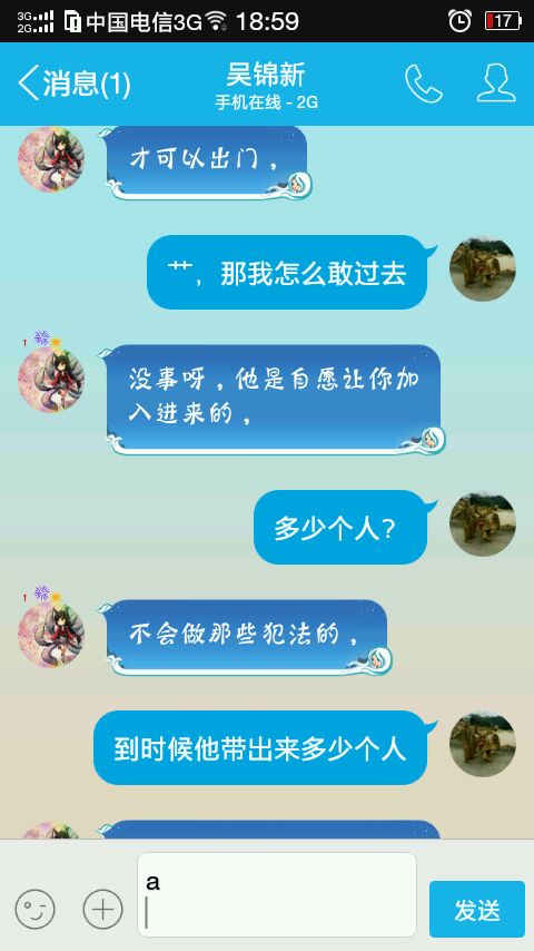 带个便衣过去就行,去警局,说明下,给人家看下聊天记录,带俩便衣提人 说不定你还有举报奖励