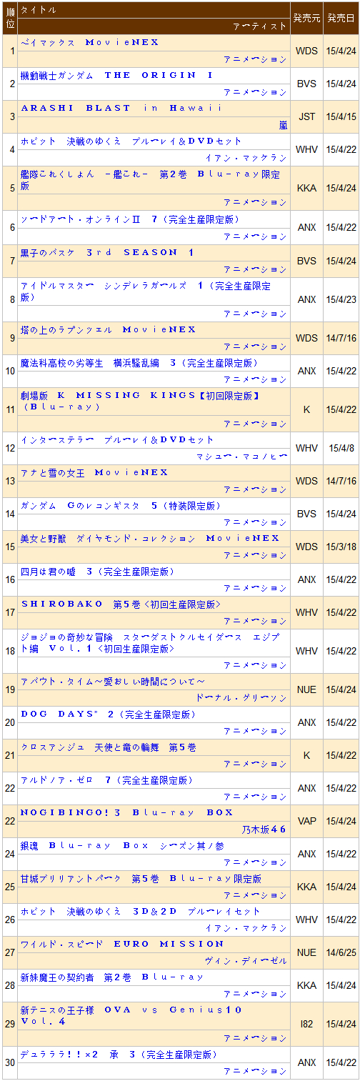 【日榜单】2015/ 04/ 28付