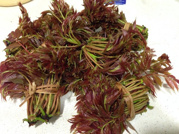 称为“树上蔬菜”的香椿,只有春天才可以品尝到它的鲜美味道。香椿叶厚芽嫩,绿叶红边,犹如玛瑙、翡翠,香味浓郁,营养之丰富远高于其他蔬菜,为宴宾之名贵佳肴。