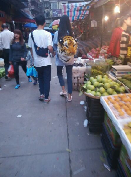 大热天的背个老虎