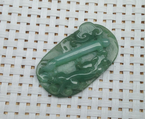 如意,A货翡翠挂件,细腻的如意,没有纹裂,大小适中,直接佩戴即可,比较厚实,有证书,