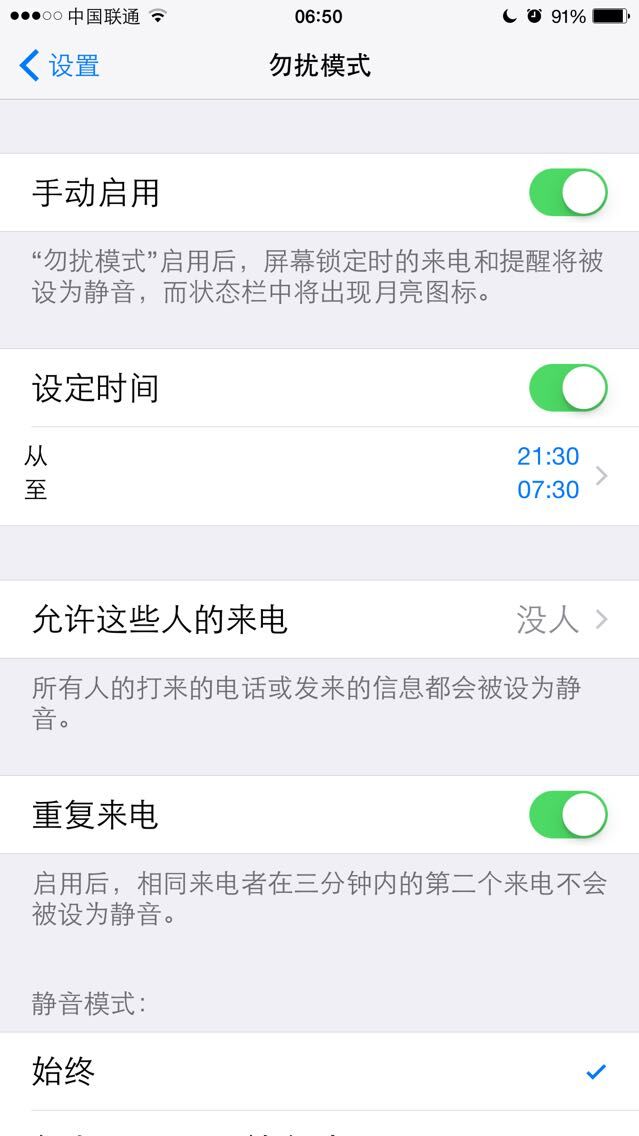 设置了晚上9点到早上7点的勿扰模式,设置了所有人都打不进来,设置了始终静音。为什么没有用,别人的骚扰电话还是会响QQ什么的也还有声音。请帮忙找找原因,是不是手机有问题!