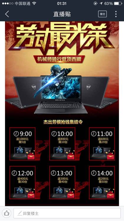 13:00 返现300元 限量50台