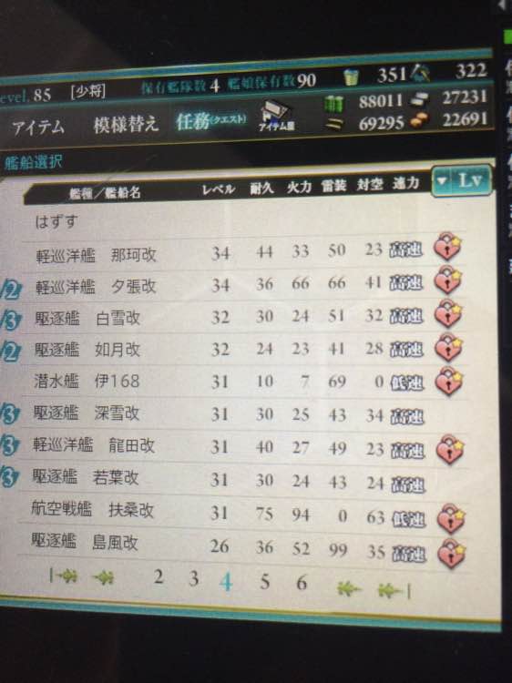 我最高的是4傻,金刚榛名81,另外两个80,其余的主力都在65-80之间,我大约第6页的中间那条船正好50级,我的二改重巡多,65级到70级的,都喂满了很好用。