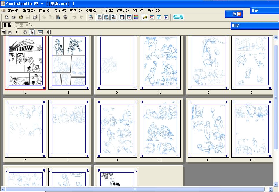 2.现在已经有15P正常了,那怎样将它们合并归一成为“cst文件”呢?首先新建作品,页数15P,然后打开刚才保存好的“cpg文件”(比如打开上图“1”文件夹里的文件),接着按CATL+A全选页面后选择全部图层进行复制,最后把复制的图层粘贴到新建的作品里,保存。(比如选作品第1P粘贴吧)。