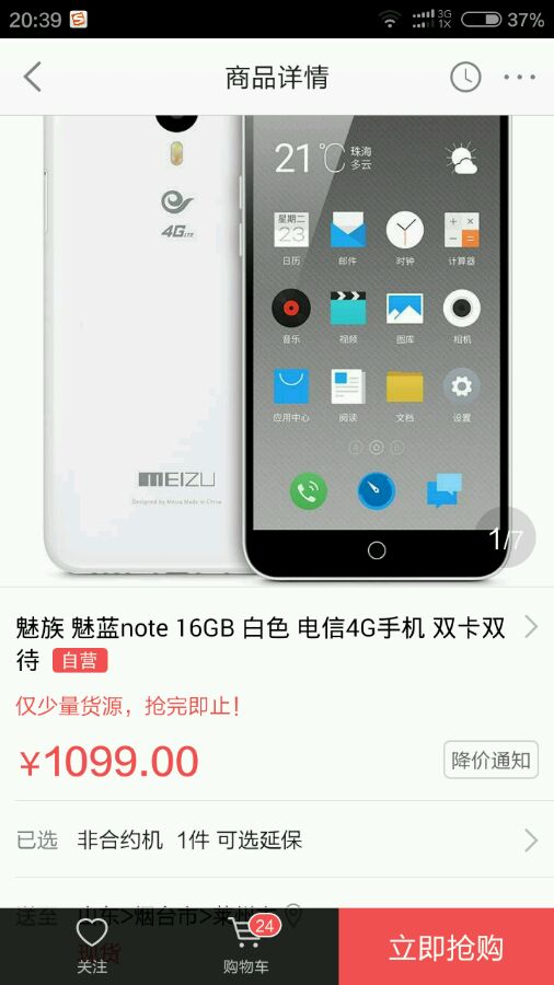 如题、手机坏了,想换块手机。看好了魅蓝note,官网上得预约。想问问咱大莱州哪来有卖的~