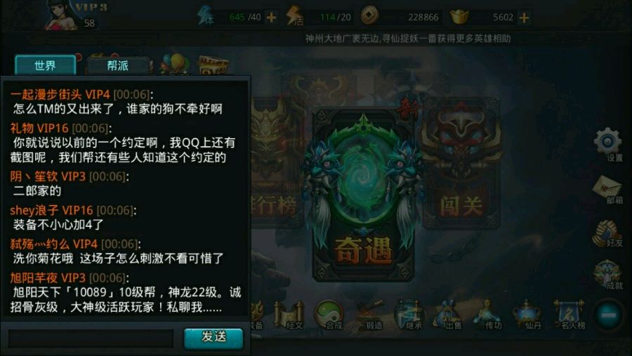 某些人看整天私聊我要吊打我。但是你TM的也得充值啊至今开区76天你丫的还是个大V4这么吊打我。不是要看我背包还有啥吗?发你看看来研究下怎么吊打我。游戏竞争是有但也别太下作了啊。整小号来烦人又意思?