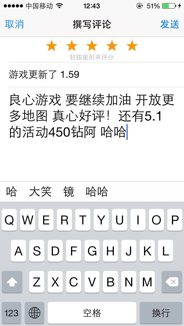 1.59版本更新,好评福利贴!APPSTORE五星好评立送80钻