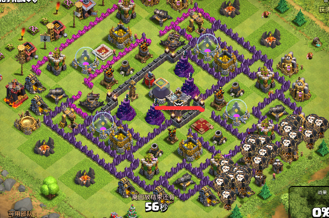 我想这下气球要是从下面进攻就得悲剧!(空着的地方是部落城堡,懒得打码了)结果被打脸了。