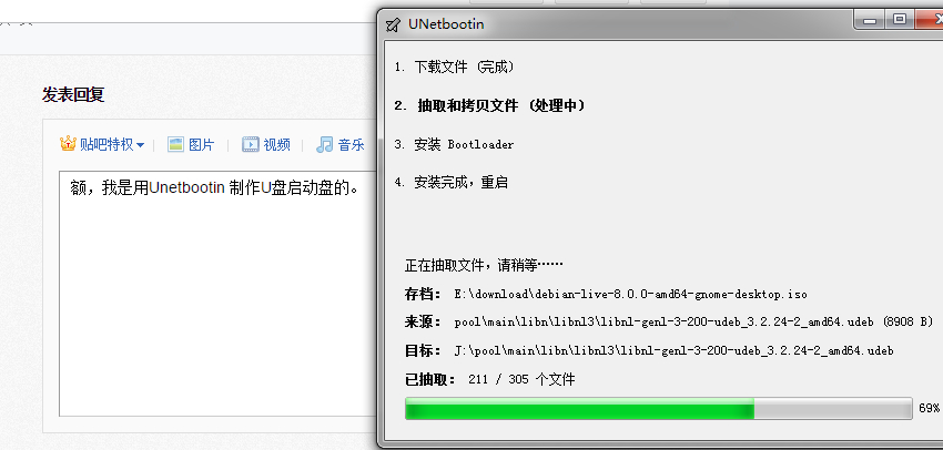 额,我是用Unetbootin 制作U盘启动盘的。