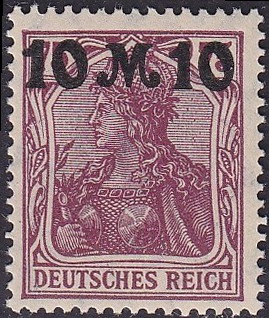德国自1900年开始发行日尔曼尼亚头像邮票(部分面值从1899年12月开始使用),至1922年共发行10组,其中有1组为改值邮票,基本种类68种。
